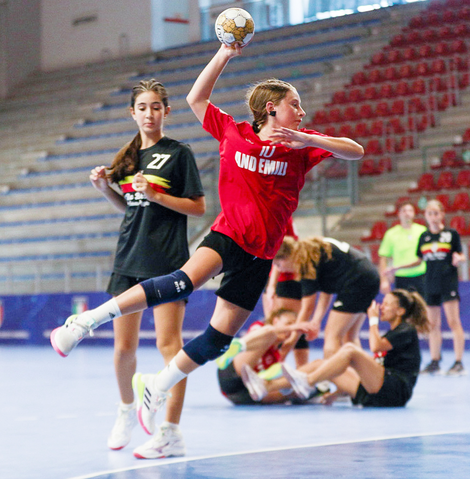 Nella foto in alto, lo Spallanzani Casalgrande U14 femminile che ha preso parte alle finali scudetto. Le immagini presenti in questa pagina sono state realizzate da Monica Mandrioli, durante il Festival della Pallamano 2025.