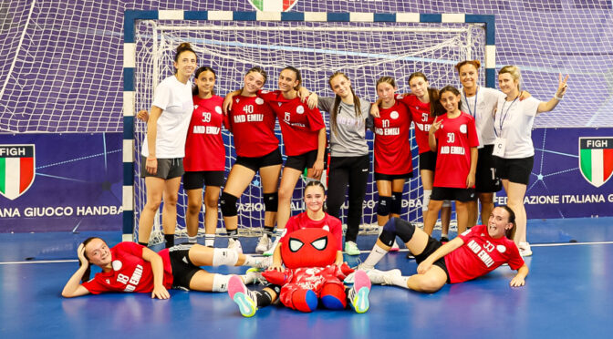 “Ad ogni modo, come detto, io ritengo che questo Spallanzani Under 14 femminile si sia comunque guadagnato un grande plauso: anche per il rendimento fornito nel corso del campionato regionale – sottolinea Ilenia Furlanetto – Le basi giuste per proseguire questo cammino di continua e proficua crescita ci sono davvero tutte, e le ragazze hanno confermato di non avere la benchè minima intenzione di disperderle. Colgo inoltre l’occasione per evidenziare anche le giocatrici che purtroppo non hanno potuto partecipare al Festival: Nicole Boldrin bloccata da un problema al dito, e Viola Terranova ferma a causa del ginocchio. Poi, da parte miaun ringraziamento a Elena Barani e a tutto lo staff tecnico dello Spallanzani Casalgrande: durante l’anno le Under 14 hanno infatti lavorato in stretta collaborazione e sinergia con i nostri gruppi femminili U16 e U18, guidati appunto da Elena. Sono inoltre grata alle ragazze e ai loro genitori, per il costante supporto che ci è stato fornito. Uno speciale ringraziamento va quindi alla responsabile del settore giovanile Stefania Guiducci e più in generale alla società, che si è impegnata a fondo per permetterci di vivere questa gratificante trasferta romagnola: tra Under 14 femminile, U14 maschile e compagine promozionale, Casalgrande era presente con un totale di 33 tra atlete e atleti. Non è certo cosa da poco. Da menzionare inoltre Monica Mandrioli e Roberta Apostol, che al Festival della pallamano hanno rivestito il ruolo di dirigenti accompagnatrici delle nostre U14″.